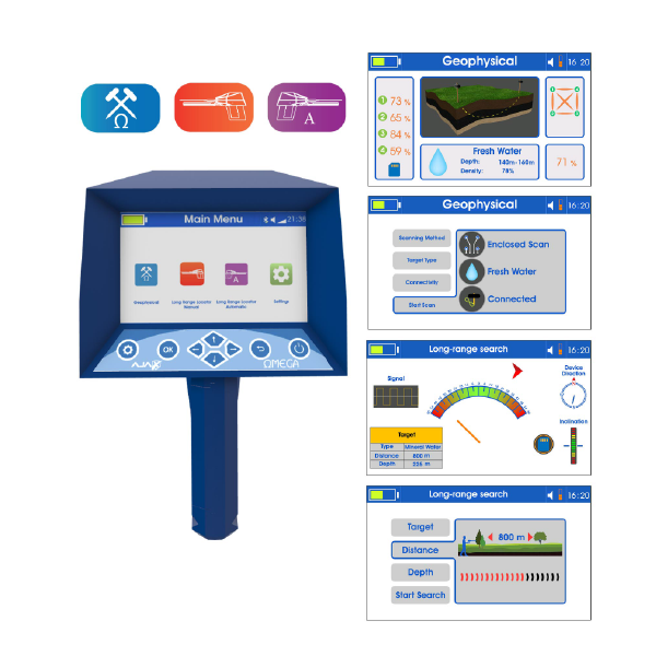 جهاز أوميغا يعمل بنظامي بحث بعيدي المدى و نظام بحث جيوفيزيائي عالي الكفاءة مصمم تحت إشراف مهندسين متخصصين ومختبرة عالميا لضمان نتائجها.